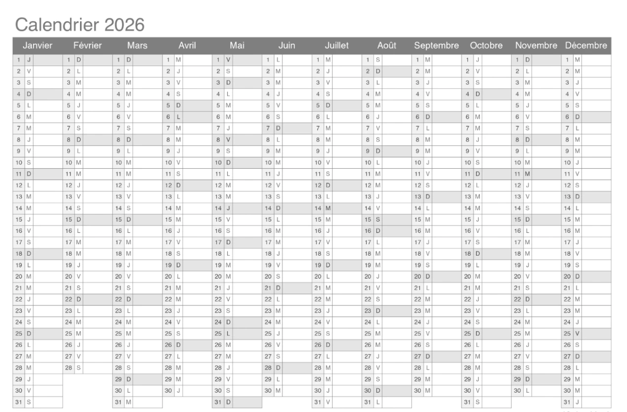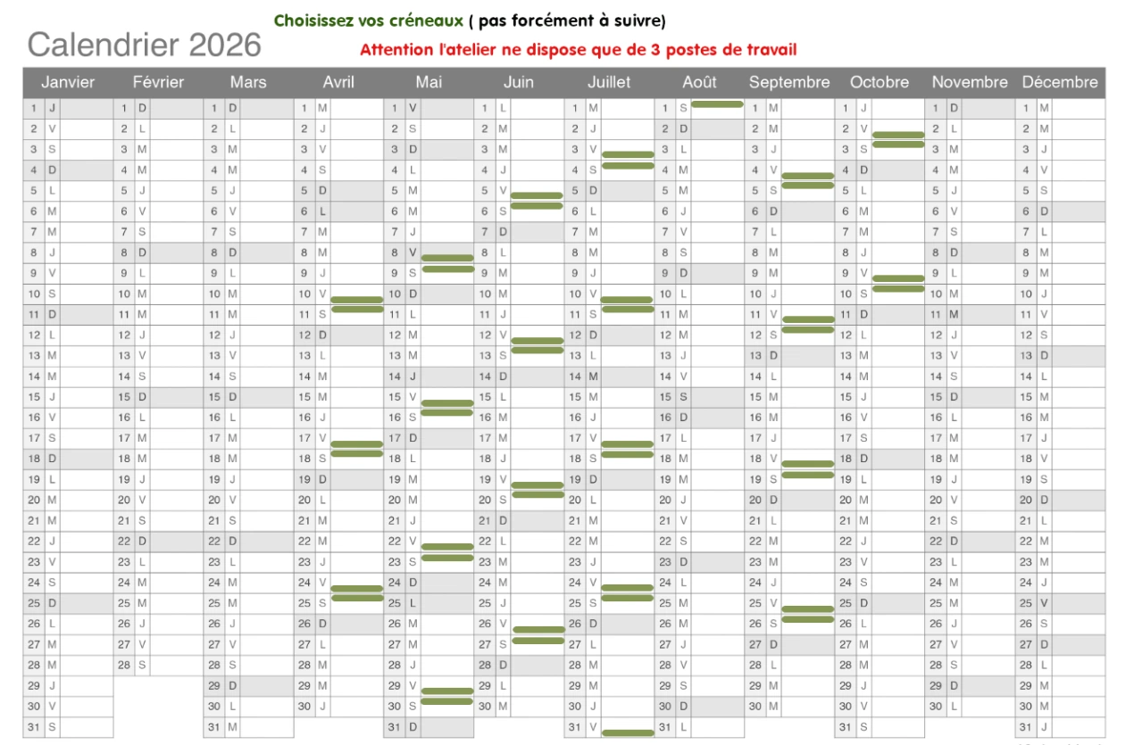 Inscriptions début Mars 2026 pour AVRIL à OCTOBRE 2026